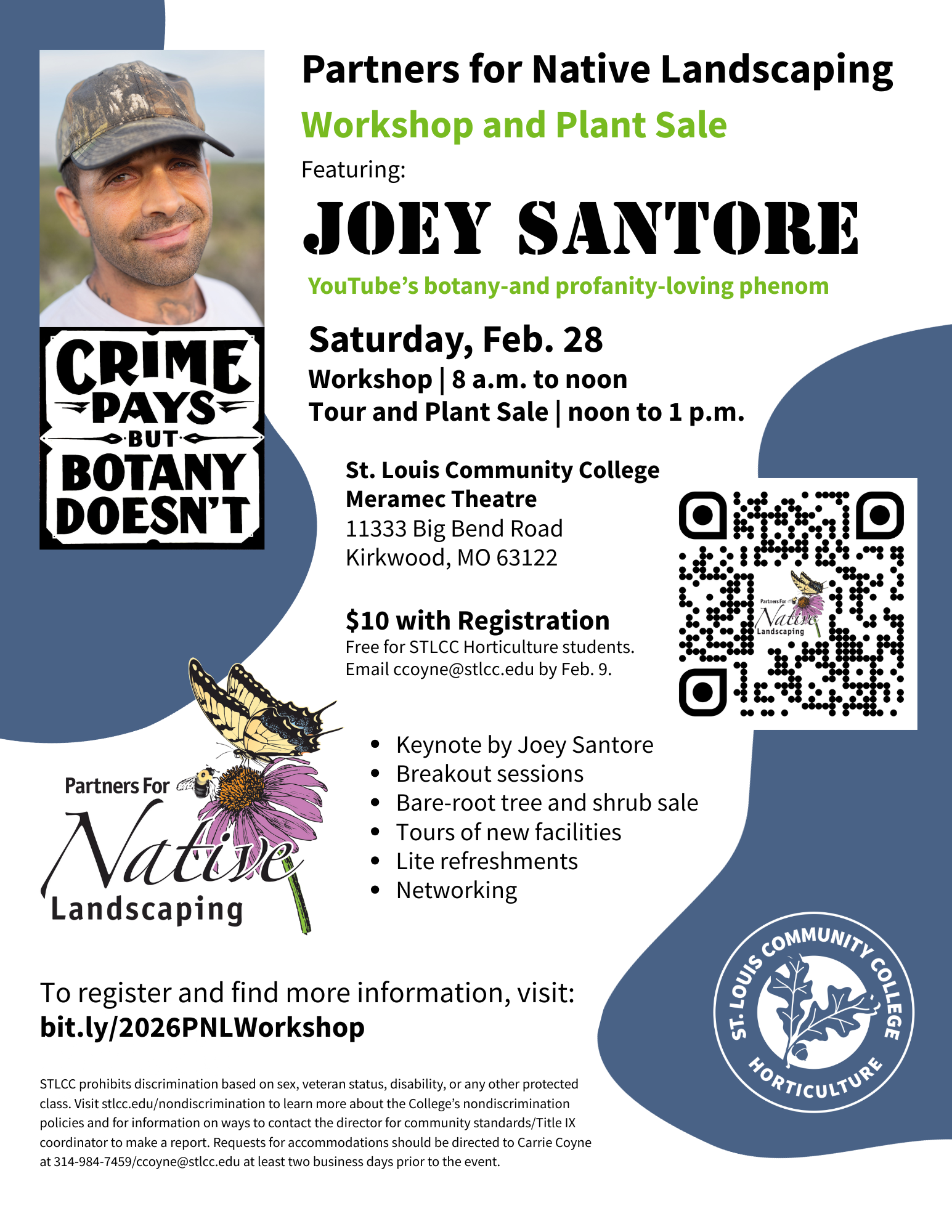 Join us for a keynote presentation by Joey Santore, a native bare-root and shrubs sale, tours of new facilities, and more as part of the Partners for Native Landscaping Workshop and Plant Sale February 28th! Registration is required. To register and learn more, visit PartnersforNativeLandscaping.org or follow the QR code in the flyer.